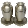 The Cheadle Pewter Companion Urns are a pair of high quality solid brass urns. They have been hand casted and intricately hand designed by skilled artisans. They have a matt brass finish with a matching heart shaped base. The ashes can be safely placed in the urn via threaded secure lids. We also have matching keepsakes which can hold a token amount of ashes – ideal for close family members to each have a memorial to treasure.
