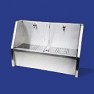 Piedmont foot trough with divided washing areas and a raised foot plate above the drainage channel.